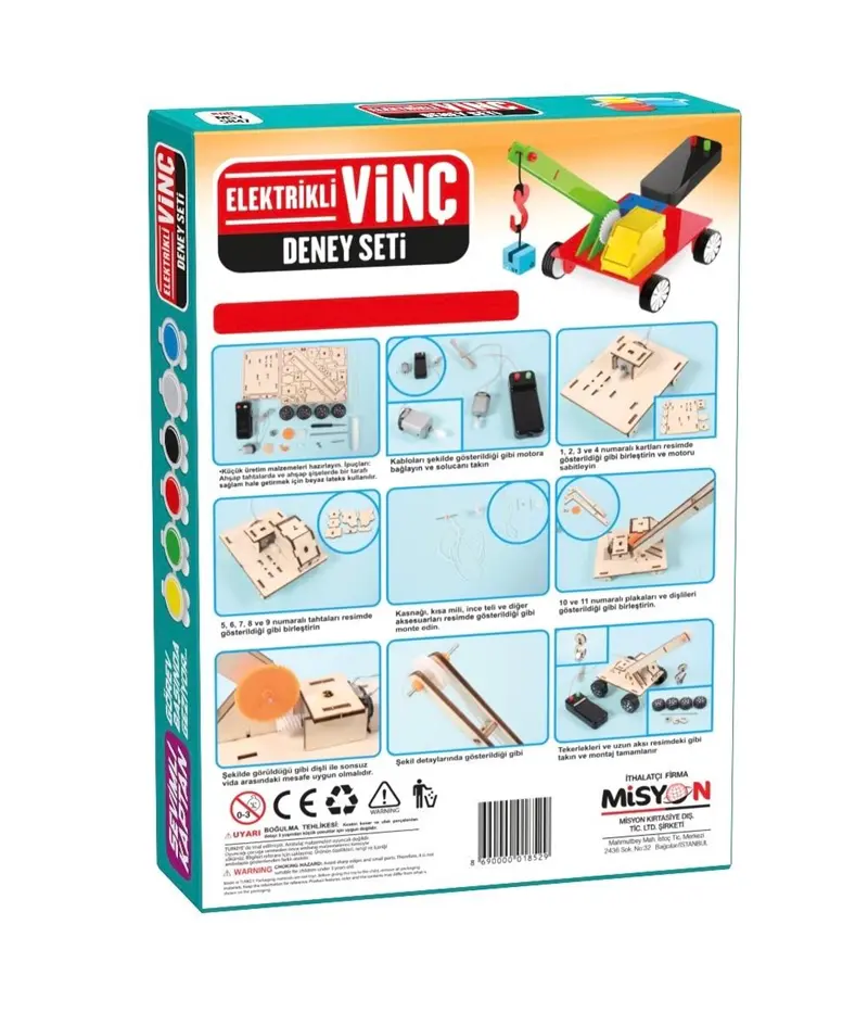 Misyon Elektrikli Vinç Deney Seti Kutulu, 7 yaş ve üzeri çocuklar için tasarlanmış eğitici bir bilim ve teknoloji setidir.Bu set, çocukların temel mühendislik ve fizik prensiplerini eğlenceli bir şekilde öğrenmelerini sağlar.