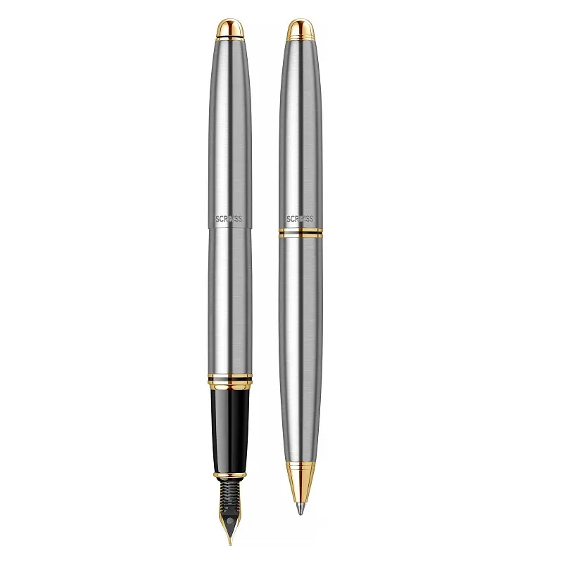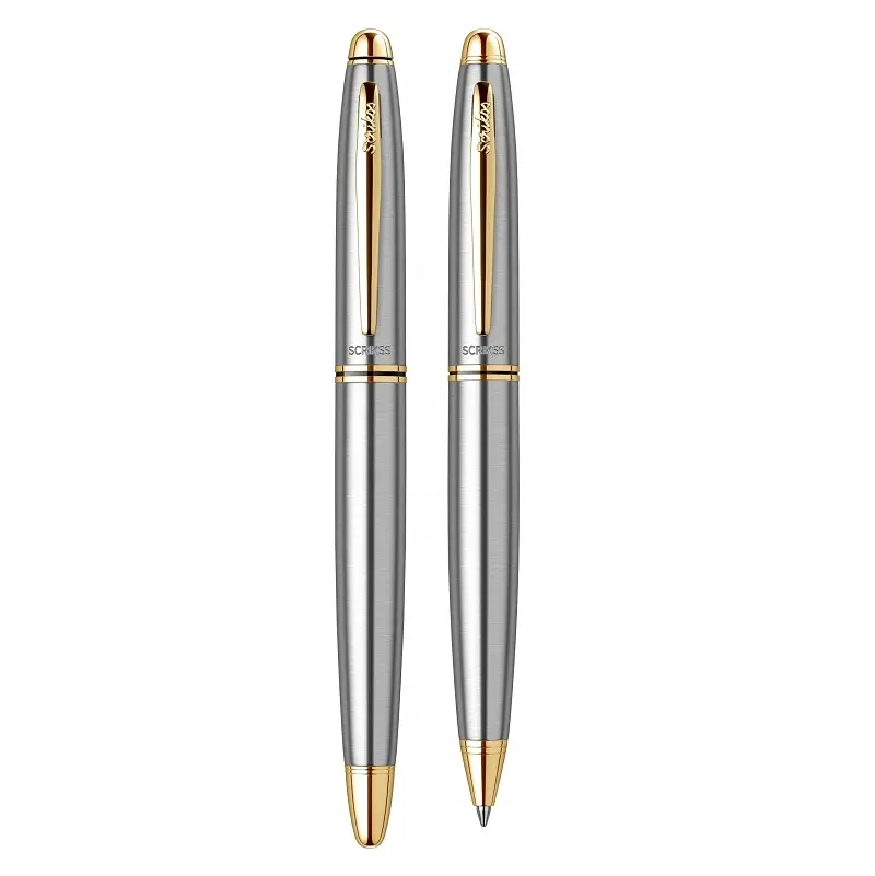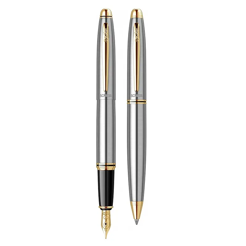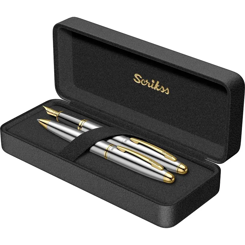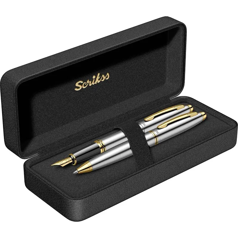 Scrikss 88 Knight İkili Set Dolma Kalem + Tükenmez Kalem Gold Krom