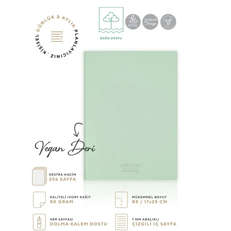 Victoria Journals Softtons Defter, B5 boyutu ve yeşil renk seçeneğiyle zarif ve kullanışlıdır. Hem kişisel hem profesyonel kullanım için mükemmel bir tercihtir.