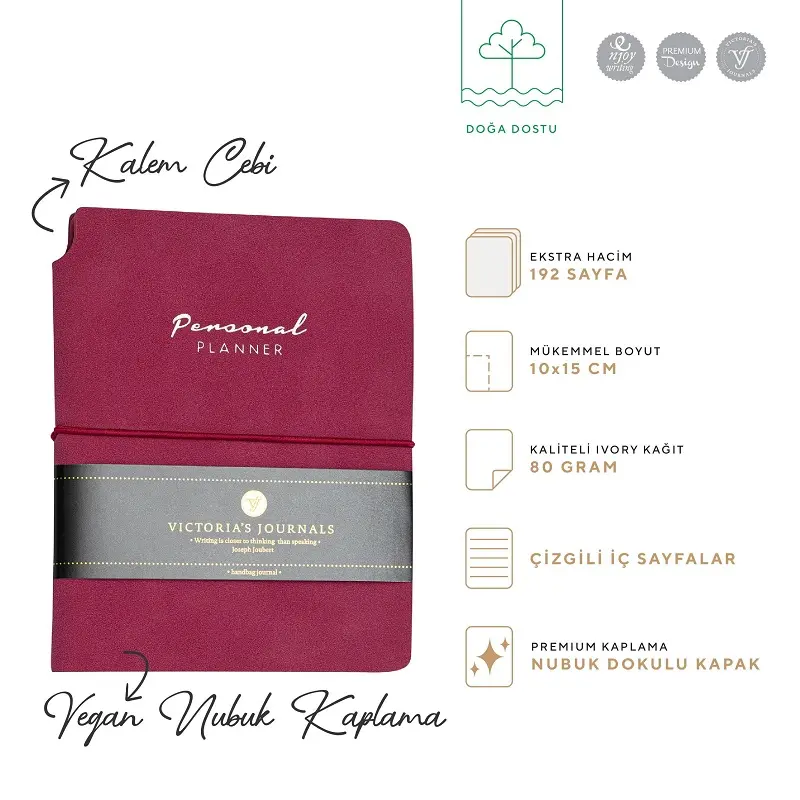 Bu şık ve kompakt defter, minimal ama sofistike tasarımıyla hem işlevsel hem de estetik bir seçenektir. Vegan deri kaplaması ve canlı fuşya rengiyle dikkat çeker. Günlük hayatın her anında size eşlik edebilecek bu ürün, kişisel planlama ve not alma alışkanlığınızı organize etmenizi sağlar.