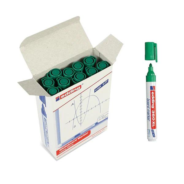 Edding 360XL yeşil yazı tahtası kalemi, geniş uçlu yapısı ve silinebilir mürekkebiyle eğitim, ofis ve sunum ortamlarında kullanılan işaretleme kalemlerinden biridir. Yeşil rengi, genellikle vurgulama ve ek notlar için tercih edilir.