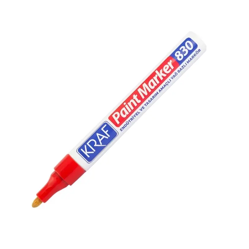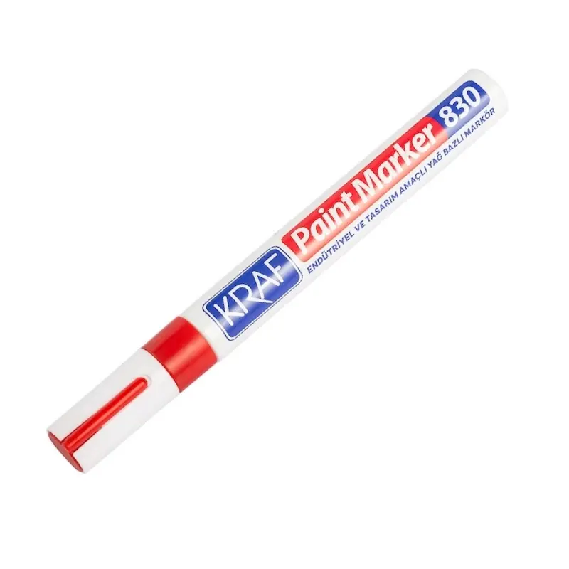 Kraf 830 Endüstriyel Yağ Bazlı Paint Marker Kırmızı, dayanıklı ve uzun ömürlü işaretlemeler yapmak için mükemmel bir araçtır. Zorlu endüstriyel koşullarda bile etkili performans gösterir. Yüksek kaliteli mürekkep, her türlü yüzeyde mükemmel sonuçlar sağlar.