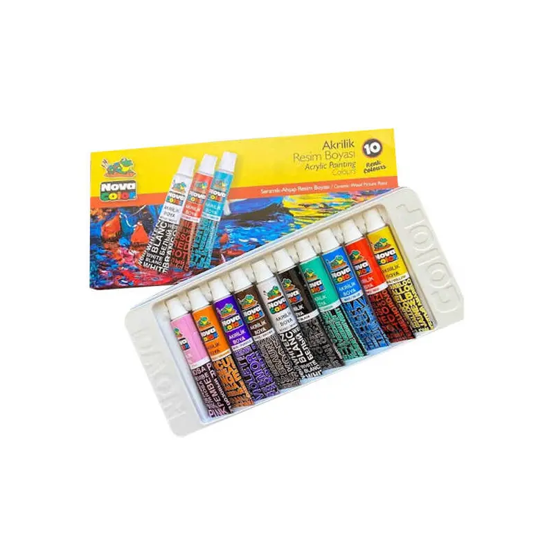 Nova Color Akrilik Boya Tüp 7 Gr. 10 Renk seti, hem profesyonel sanatçılar hem de hobi severler için ideal bir seçenektir. Aşağıda bu setin özellikleri ve kullanım alanları detaylı olarak sunulmuştur: