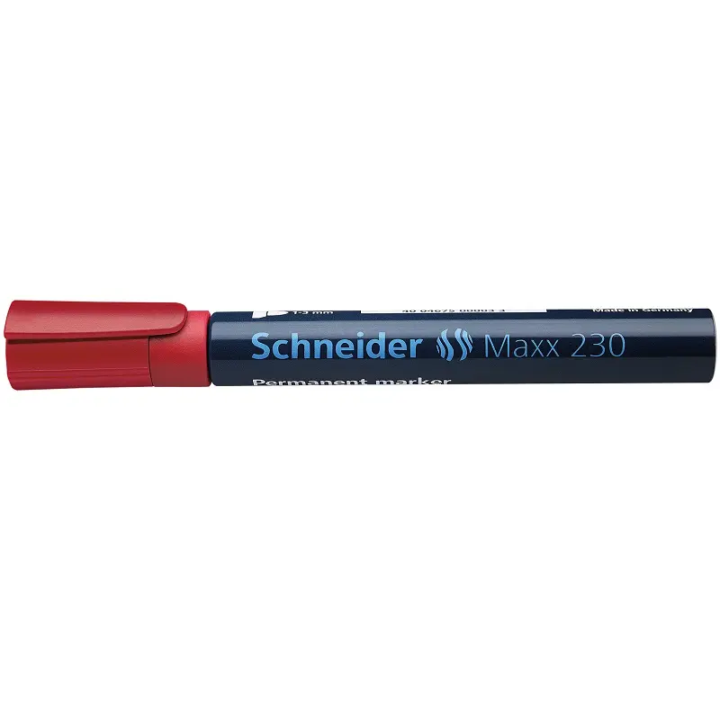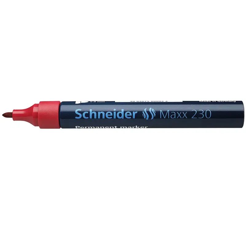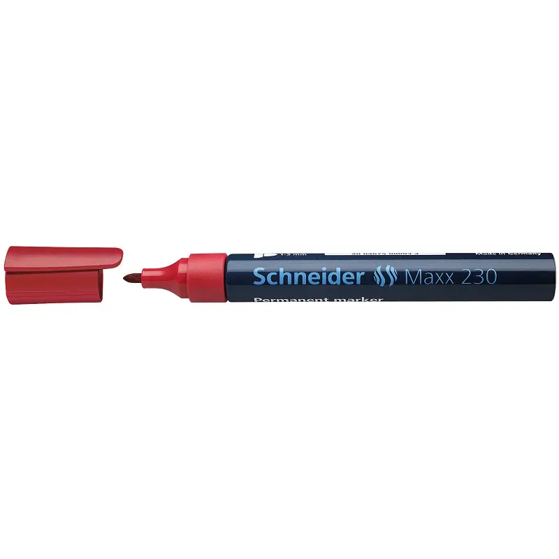 Schneider Maxx 230 permanent markör, kalıcı kırmızı mürekkebi ve 1-3 mm değişken uç genişliği ile geniş bir kullanım alanı sunar. 10'lu paket halinde sunulan bu dayanıklı kalem, ofislerden okullara birçok alanda güvenle kullanılabilir.