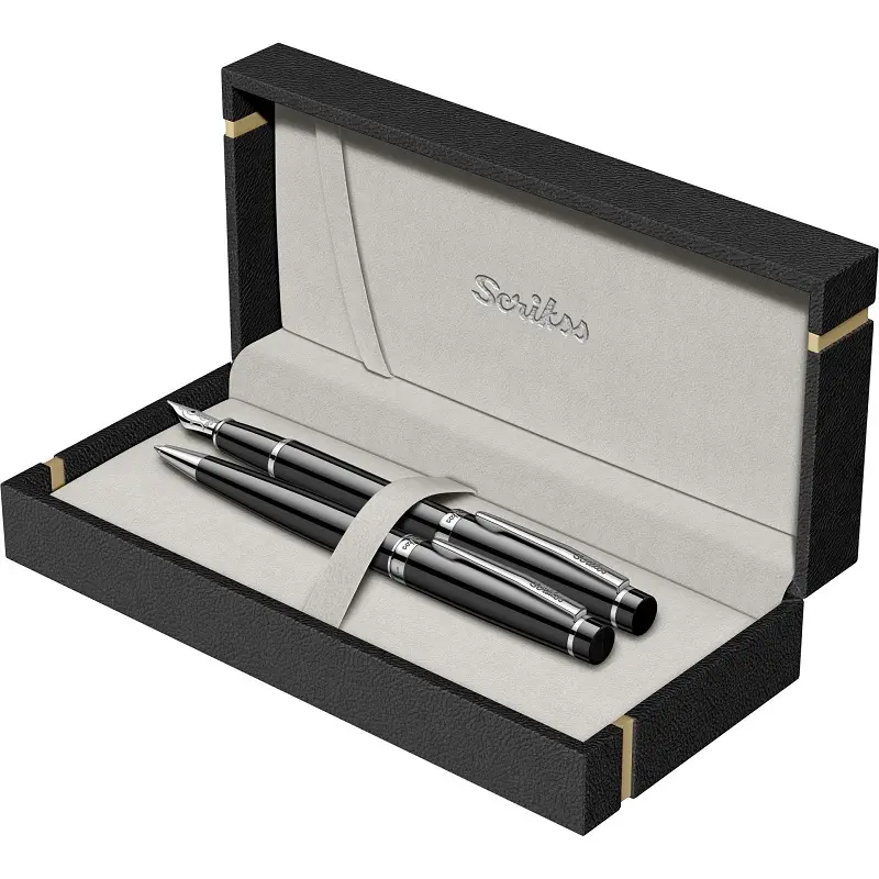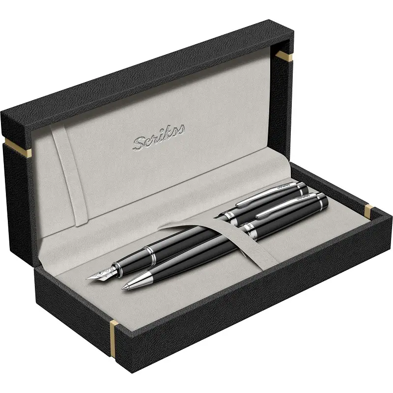 Scrikss 38 Honour İkili Set Dolma Kalem - Tükenmez Kalem Siyah Krom